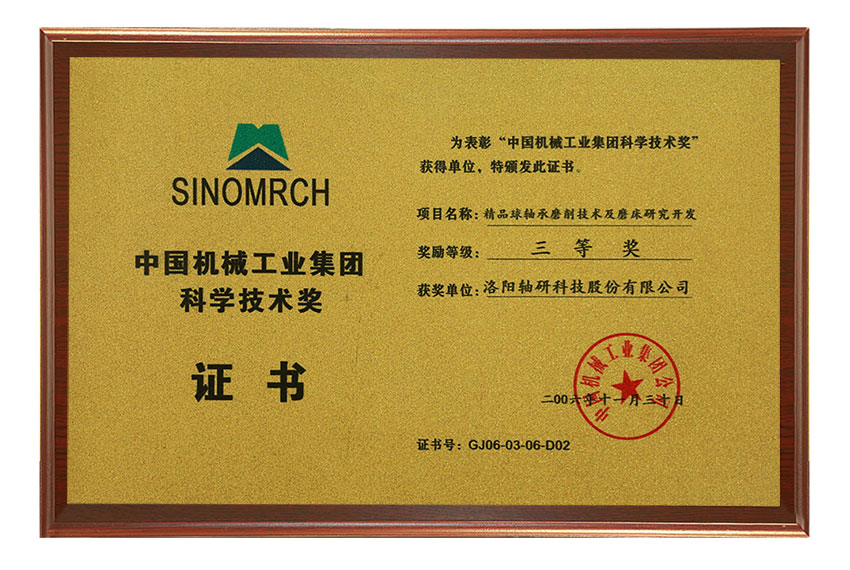中國(guó)機(jī)械工業(yè)集團(tuán)科學(xué)技術(shù)獎(jiǎng)三等獎(jiǎng)
