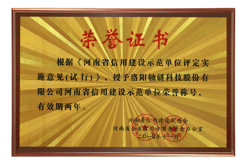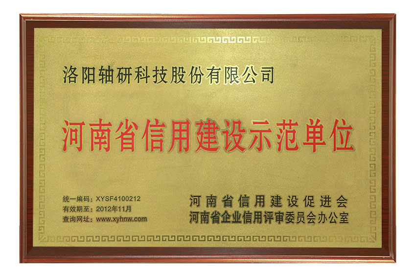 河南省信用建設(shè)示范單位榮譽(yù)稱號(hào)
